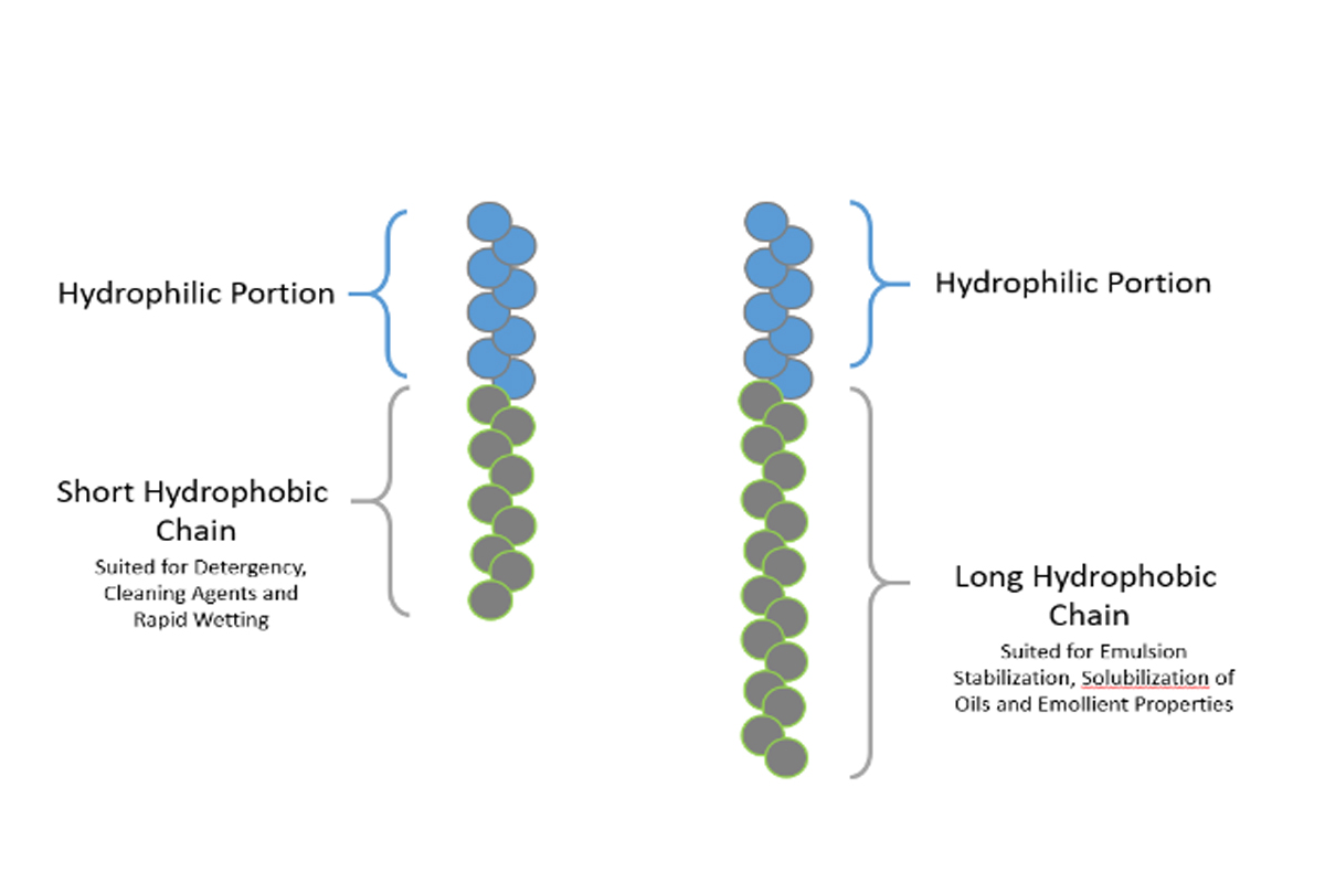 與相同摩爾乙氧基化的較長(zhǎng)烷基鏈(+ C14)表面活性劑相比,這些較短的C9-C11烷基鏈?zhǔn)惯@些醇乙氧基化物通常以增加的速率潤(rùn)濕受污染的表面。這種增加的潤(rùn)濕速率是表面活性劑疏水鏈尺寸的直接結(jié)果,因?yàn)檩^小的烷基鏈傾向于比較大的烷基鏈在溶液中擴(kuò)散得更快。 這些類(lèi)型的醇乙氧基化物的擴(kuò)散會(huì)迅速將表面活性劑帶入水和給定基材(空氣,棉花,灰塵等)的界面)。C9-C11非離子表面活性劑的這種快速擴(kuò)散導(dǎo)致潤(rùn)濕速率的增加,從而導(dǎo)致醇乙氧基化物的滲透性極強(qiáng),可以穿透臟污的表面(即清潔浴室地面),因此通常用作洗滌劑、脫脂劑和清潔劑。將C9-C11醇乙氧基化物摻入清潔產(chǎn)品中可為消費(fèi)者提供一種產(chǎn)品,該產(chǎn)品能夠更快、更有效地清潔臟污的表面,而不會(huì)在新清潔的表面上留下油性殘留物。